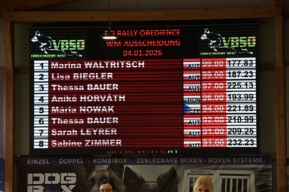Am 3. und 4. Jänner 2026 fand in Ebreichsdorf das erste Qualifikationswochenende für die FCI Rally Obedience WM 2026 in Dänemark statt. Trotz herausfordernder Wetterbedingungen und einigen ausgefallenen Teams gingen an beiden Tagen zahlreiche motivierte Starterinnen und Starter an den Start, darunter viele neue Gesichter.